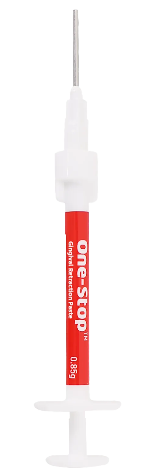 One-Stop™ est un agent pré-empreinte topique sous forme de pâte qui assure la rétraction gingivale.